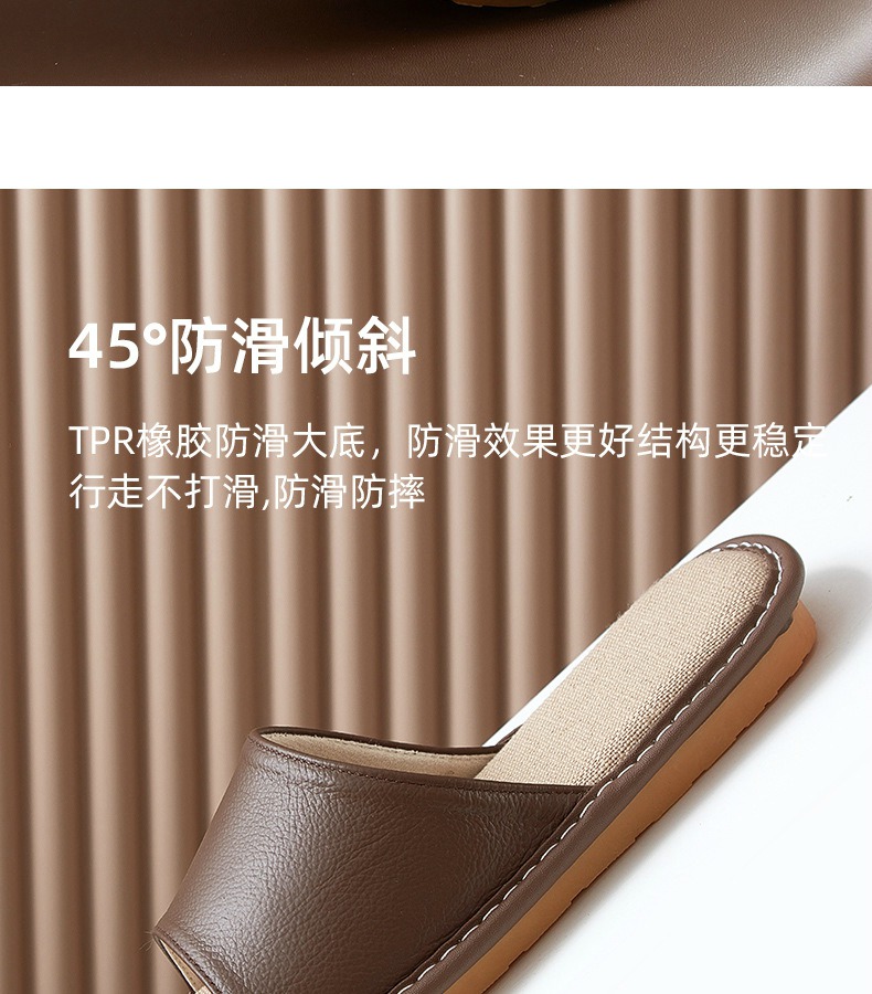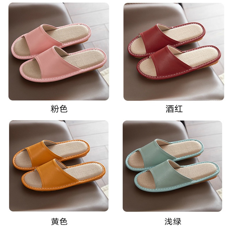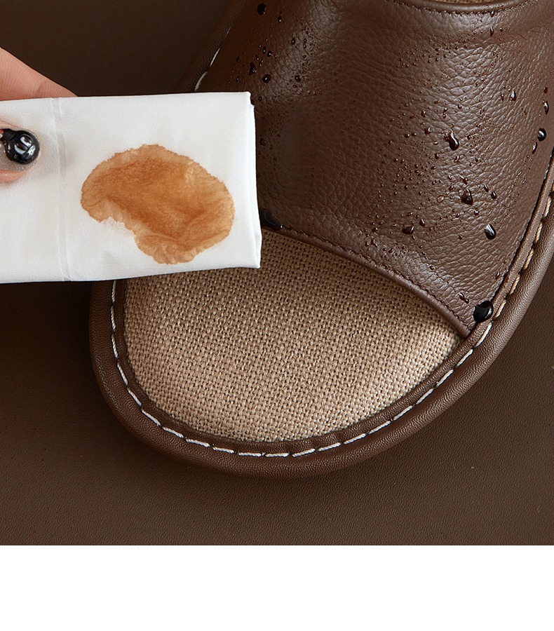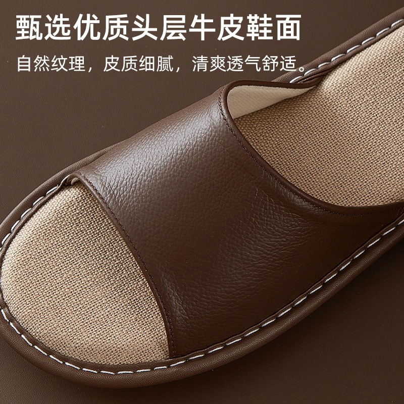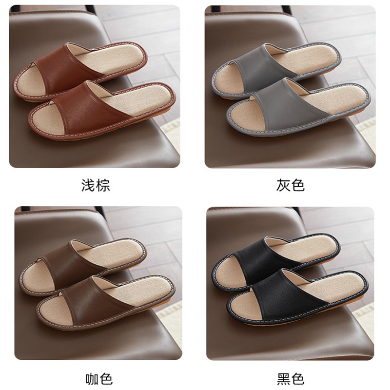 Leather slippers, cowhide soft and lightweight, one foot convenient, summer home slippers